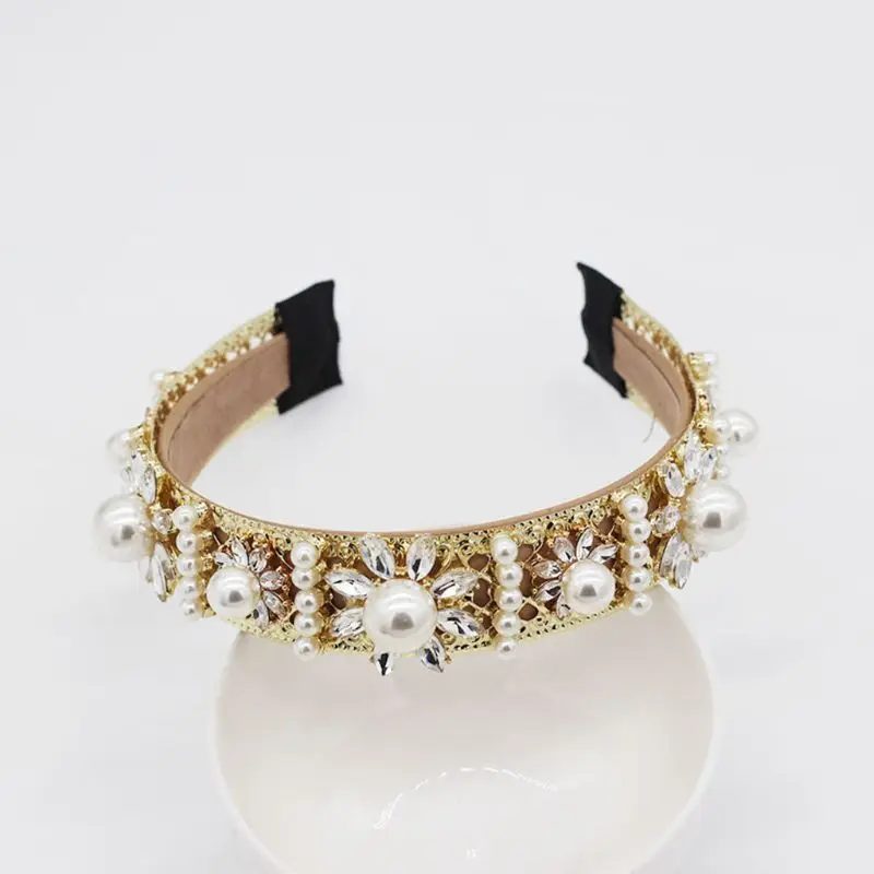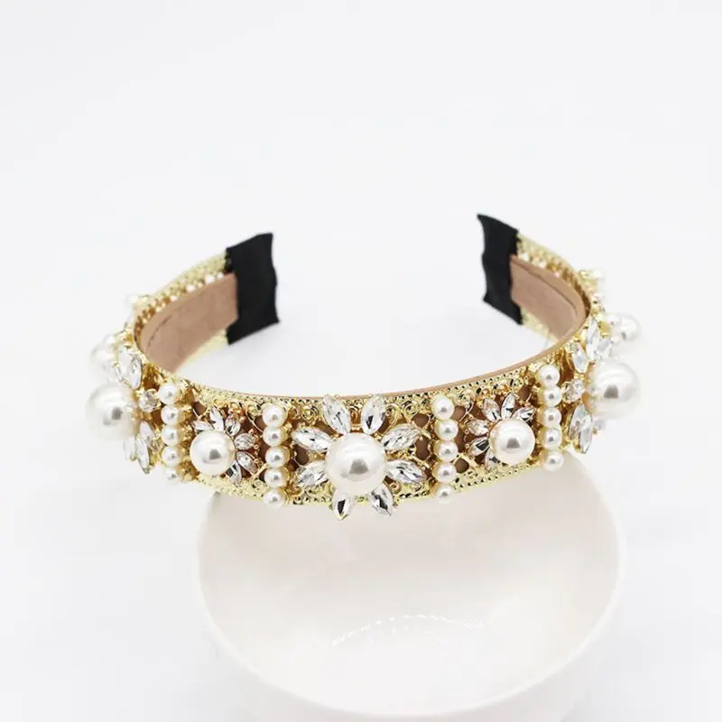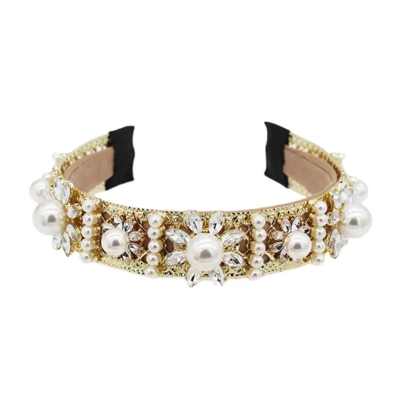 HOT SALE Baroque Palace Faux Pearl Headband Full Jewelry Alloy Dance Party Wide Hair Hoop
