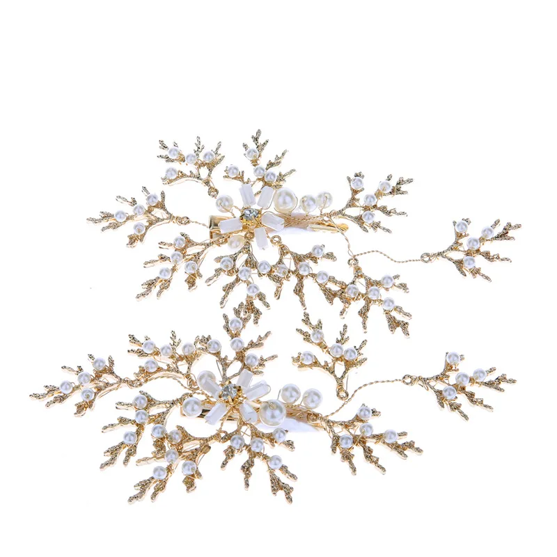 Bride Pearl Twig Hair Clip Earrings Sets Wedding Golden Hairband Flower Hairband Wedding Hair Acces