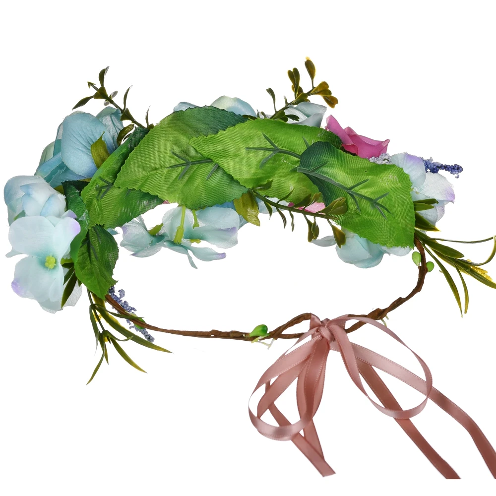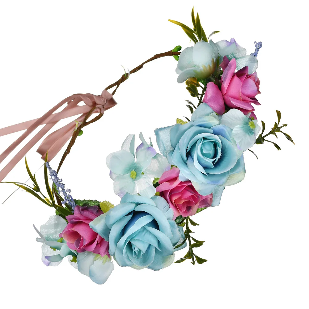 Handmade Fashion Hair Band Floral Wreaths Bride Crown Flower Hair Wedding Hair Accessories Blue Ros
