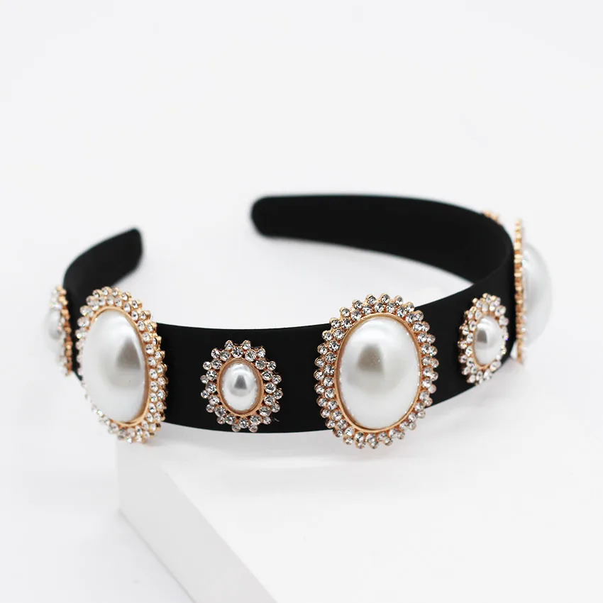 HOT SALE New fashion Baroque metal oval pearl rhinestone geometric headband street dance party travel show h