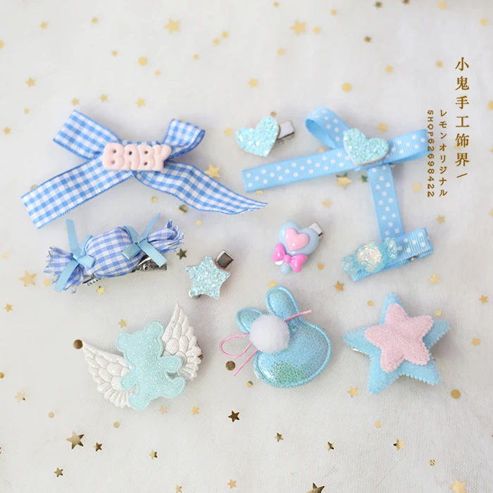 Handmade Hair clip Pink blue Hair accessories Soft Sister Sweet Bowknot Side Clip Lolita Kawaii Hai