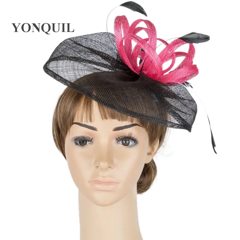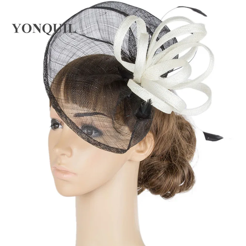 ORIGINAL Vintage derby Elegant ladies hair fascinators hats sinamay party headbands with feather decor on ha