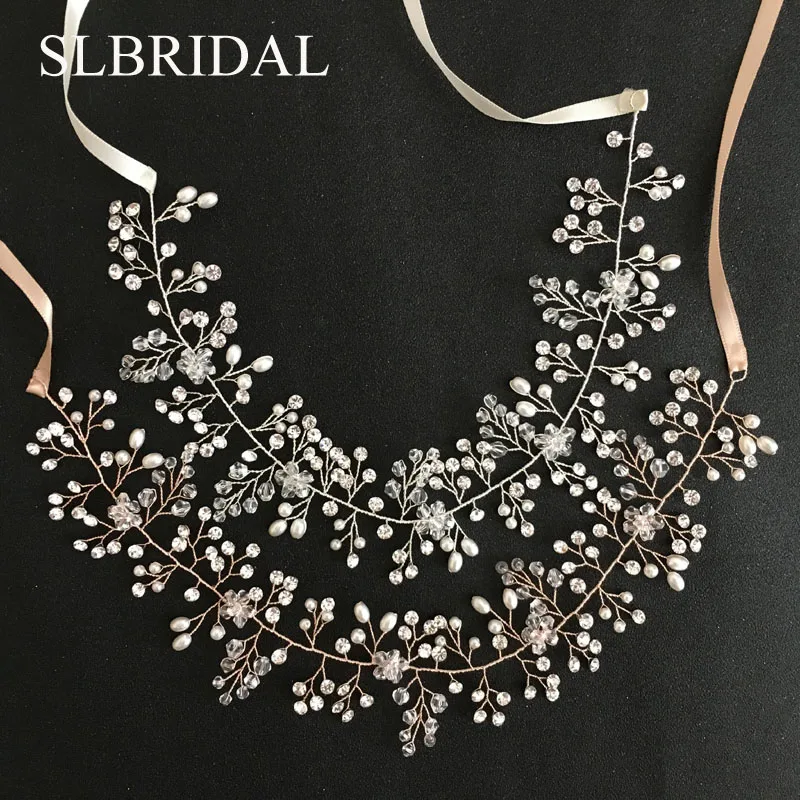 BEST QUALITY SLBRIDAL Rose Gold Vintage Diamantes Crystals Rhinestones Pearls Wedding Hair accessories Hairband